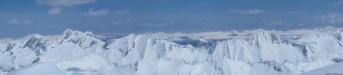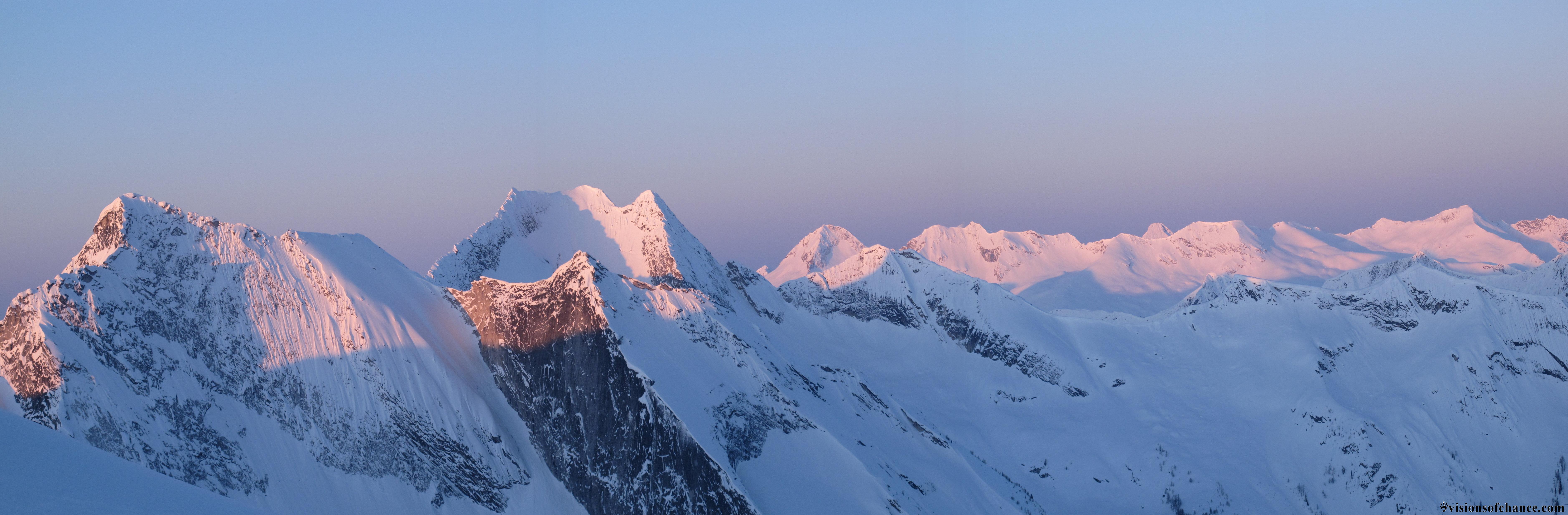 It was awesome to have the track set up through the steep terrain, and leaving the skis just below the rocky summit we scrambled up for a second round of high fives. The view from the top of this part of the world: