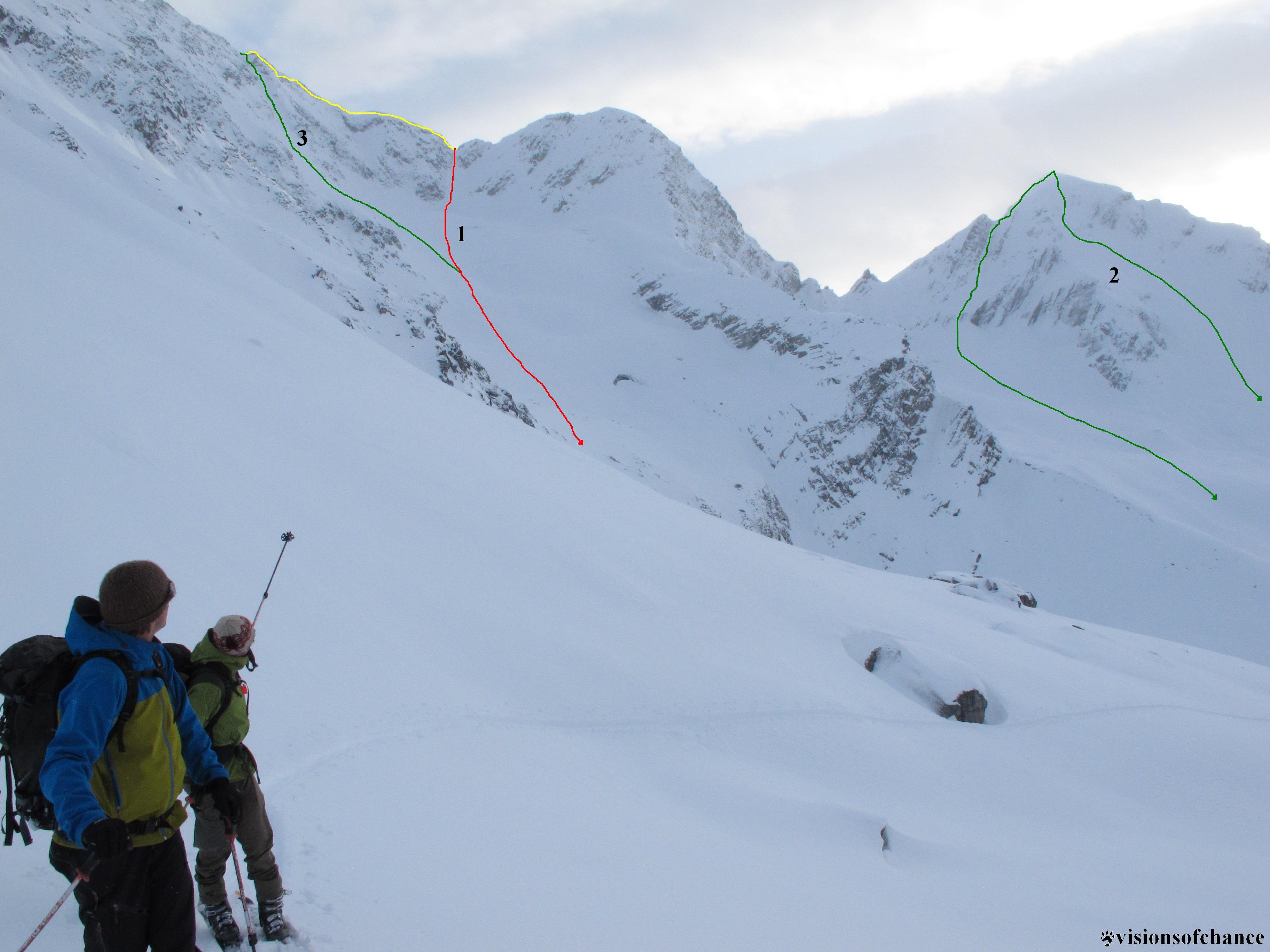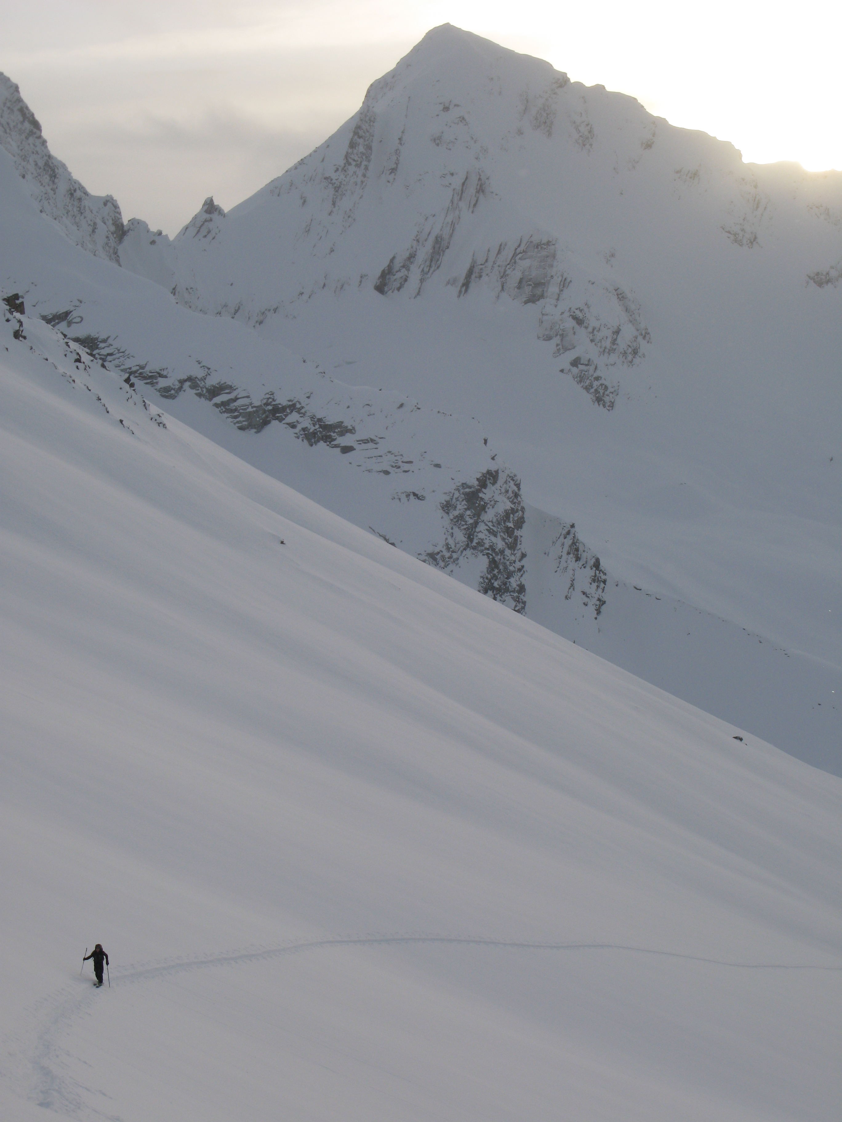 The skiing was fine, really nice powder, and as we skinned towards our chosen exit (thru Sifton/little Sifton col) away from this “hidden” gem, I’m sure we were all stealing glances back at our line of today, lines of the past, and lines of the future. What a zone!