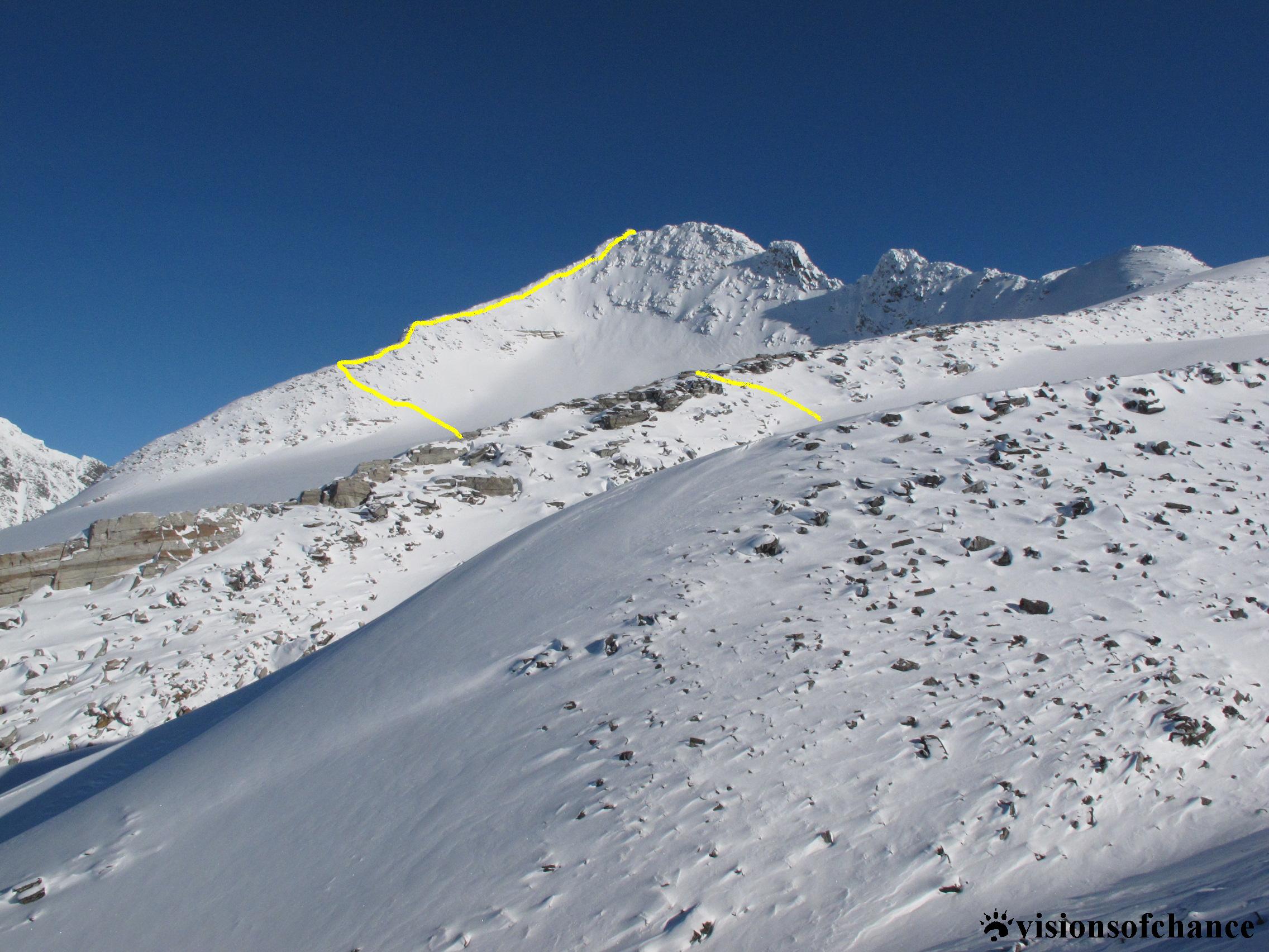 I love these days when you can actually see! We eyed our prospective “out” from a vantage point on the ridge, and it looked steep. Good thing it was shaded by Sifton, giving me a bit of confidence…