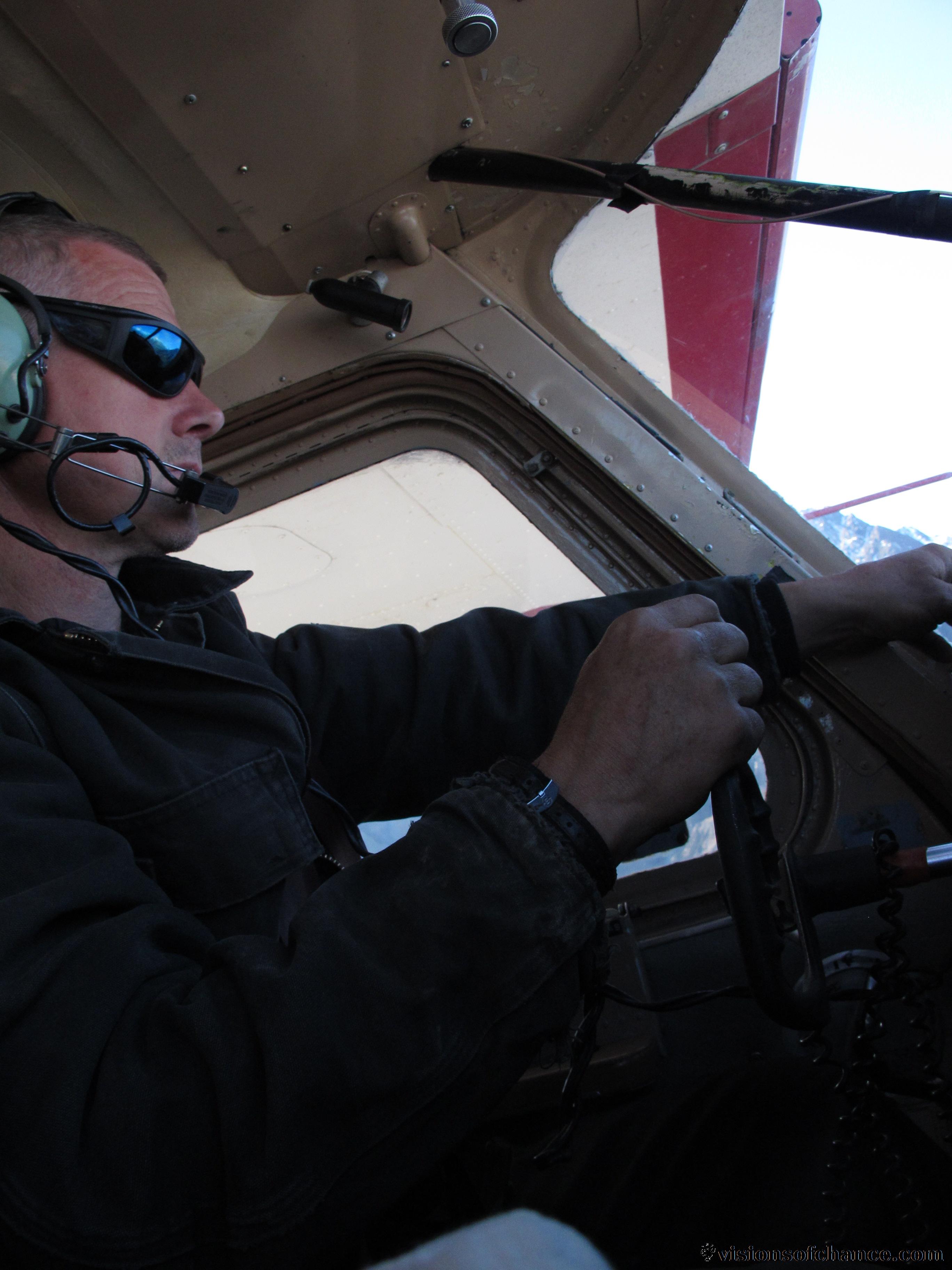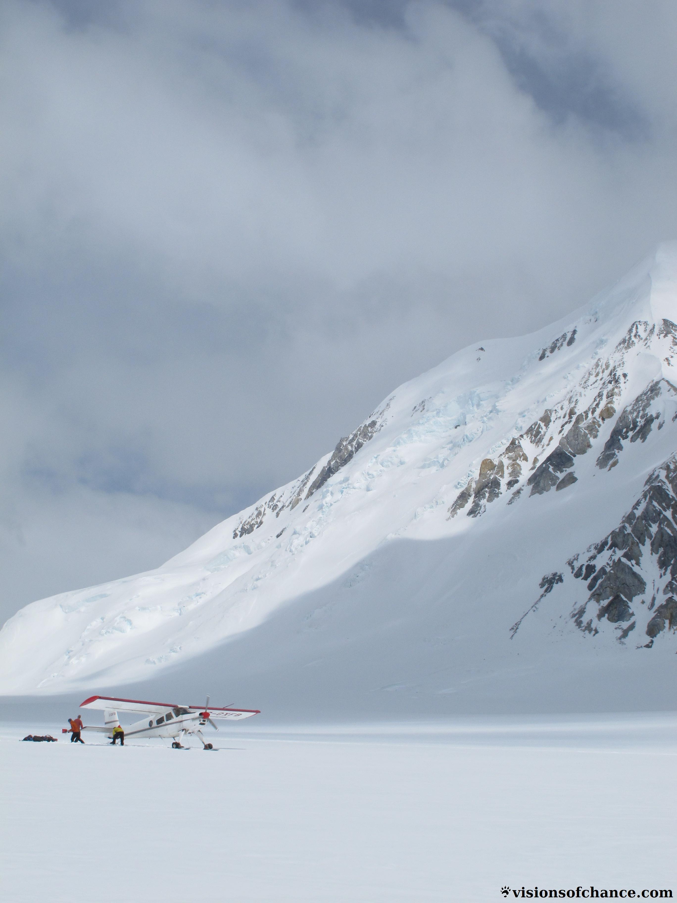Andy Williams at Icefields Discovery has been flying climbers into the St Elias Range for 30 years, and the tool of his trade is a Helio Courier, an aircraft favoured by bushpilots for it’s short takeoff and landing capabilities. Apparently designed and built for transporting high-end military personnel, an integrated roll cage and very low minimum airspeed make surviving a crash a bit more likely. Perfect.