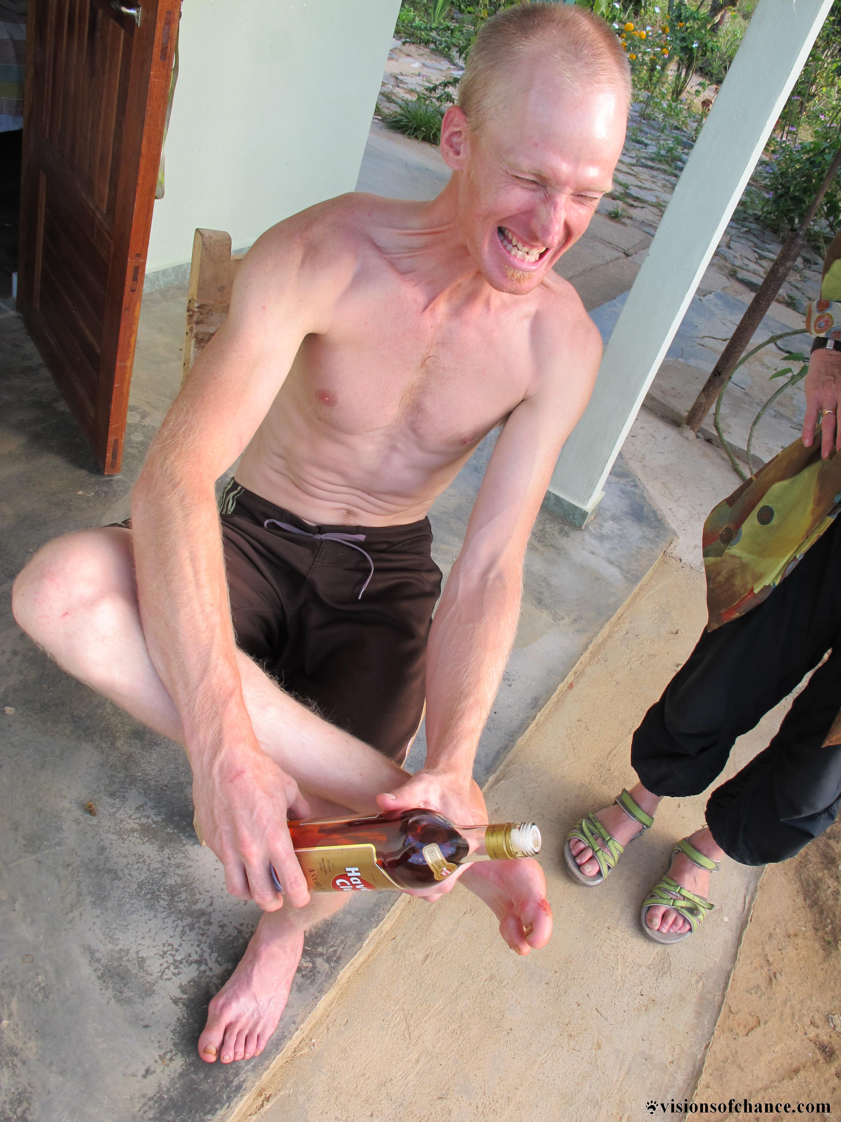 - Treating an open wound on my foot with Cuba’s finest, Havana Club. May also be taken internally.