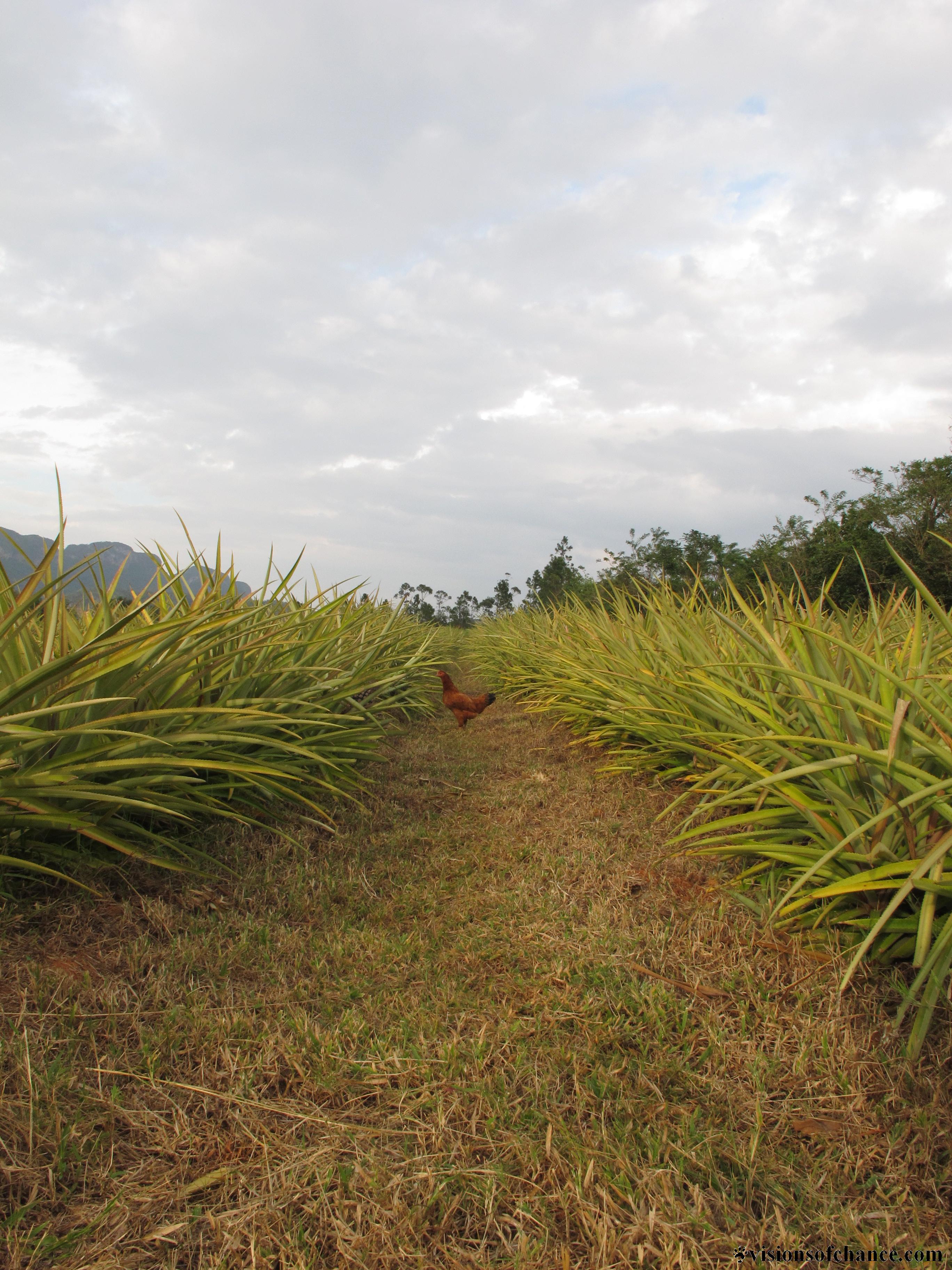 - Free rangin’ among the pineapple plants on Raul’s farm.
