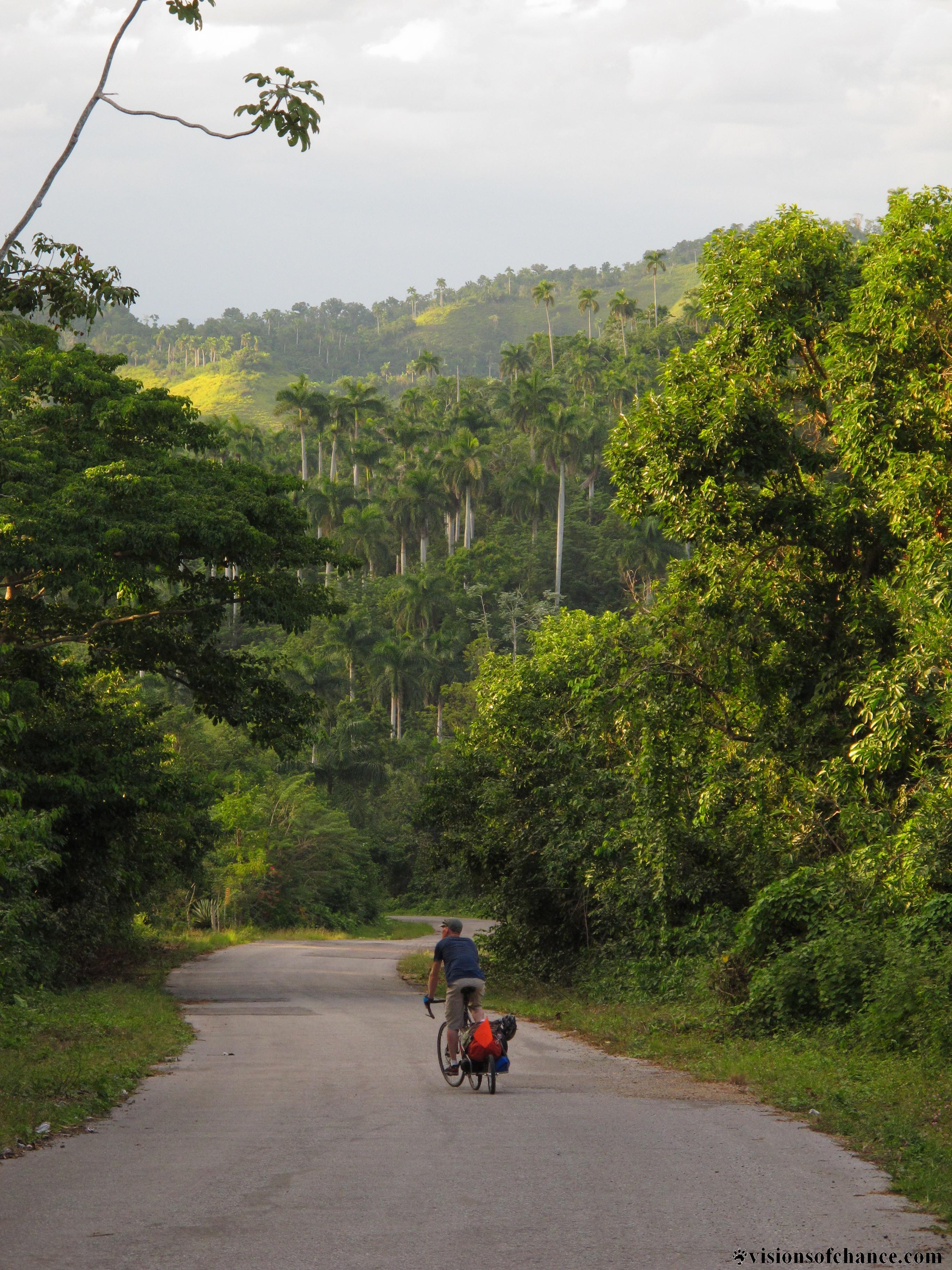 There was a bit of backtracking on this part of our journey, here at Les Terraces because our minimal Spanish had us standing at the gate for the banos with the wrong entry ticket. This meant dropping the trailer and riding back to the park entrance gate for the correct ticket, tacking an extra 15k on the day. There is a cool little restaurant in the village (El Romero) that served up dishes with local ingredients, whole grains and some tasty baked rolls, a nice change from the standard rice and beans. A night in the tent beside a sweet river and a gorgeous ride the following day had us arriving in Las Palmas. Upon the realization that an important article had been left behind in the restaurant mentioned above, we tried to figure out the best way to backtrack for the second time in as many days. Thankfully some very friendly and helpful Cubans were on hand, and the next day Hailey got a lift to retrieve it.