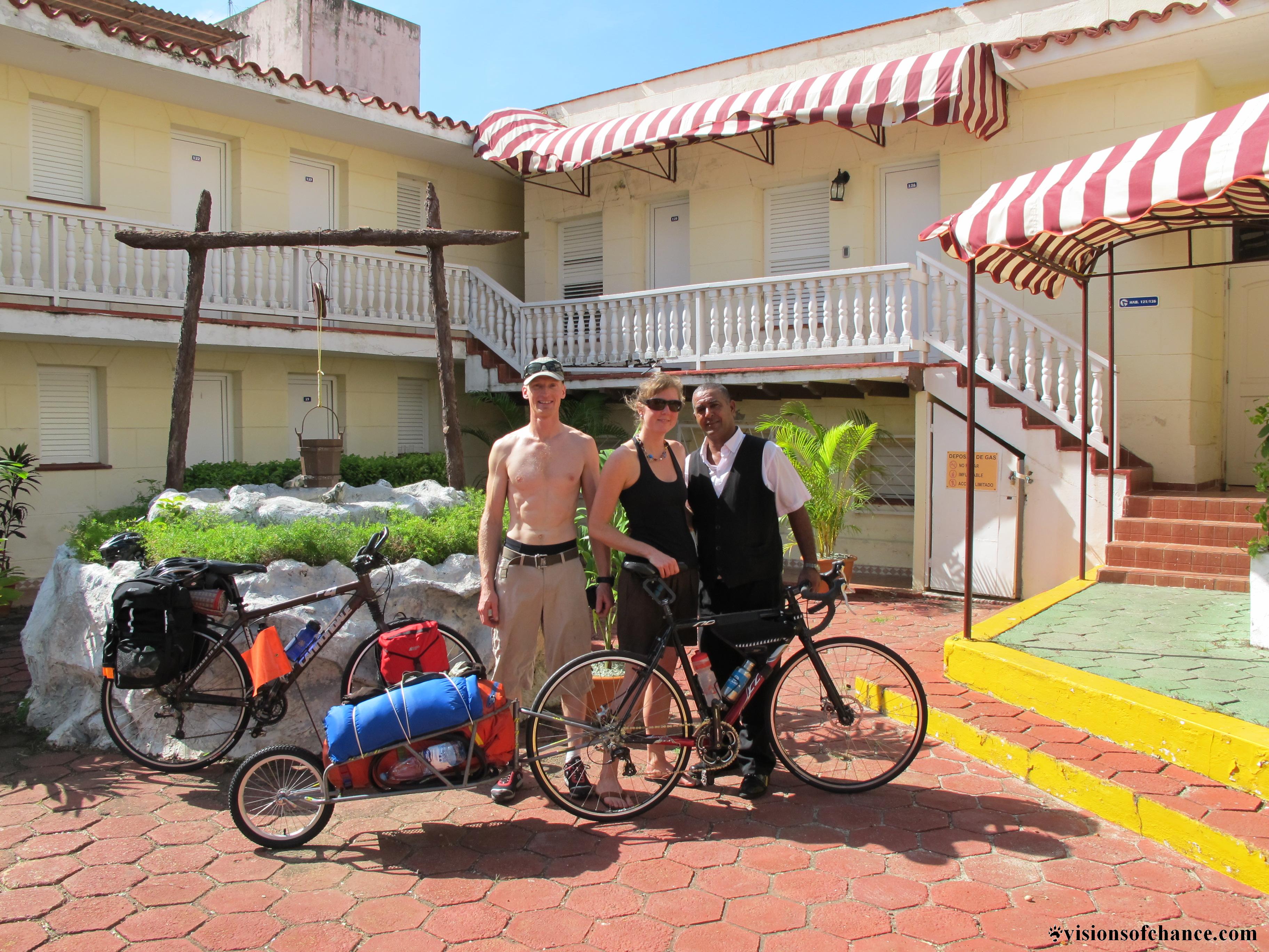 After cycling through Matanzas the following morning, we continued along through the countryside on both tranquil back roads and busy multi-lane highways, heading in the direction of Playa Jibacoa. Rolling hills green with jungle, palm trees, glimpses of the ocean, cows, goats, chickens, horsecarts and friendly/curious Cubans kept us entertained until we pulled into Campismo los Cocos, the Cuban version of a campground. Which doesn’t involve camping at all, but renting one of many small concrete bungalows in a fenced in fully serviced compound. Restaurants, games rooms, medical center, swimming pool and a bar (equipped with a stereo that cranked out very loud Reggaeton to the wee hours..).