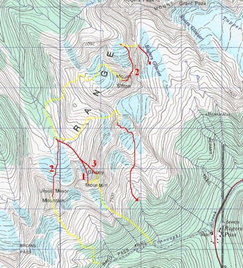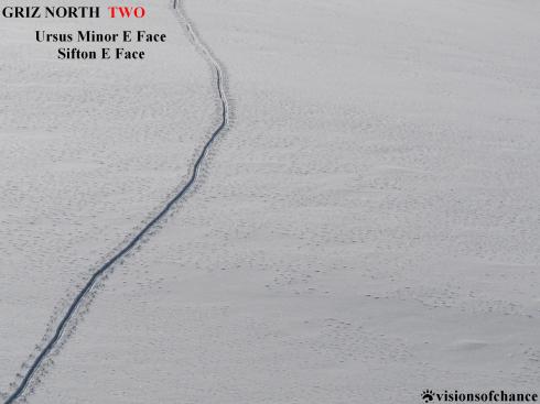 I have had three fantastic days on the N side of Grizzly peak this season, which appears to be a rarely visited shangri-la of steep faces and couloirs overlooked by the hordes that stick to the trade routes of Connaught Creek. There is a plethora of variations to acces this “hidden” valley that drains into Ursus Creek to the North, but exiting is a mission. One must have good confidence in the stability to climb up and out via the Sifton/little Sifton col or be prepared for a long circuitous route around the East ridges of Ursus Minor and Video peak to climb up to Bruins Pass. I guess this is what keeps people away…