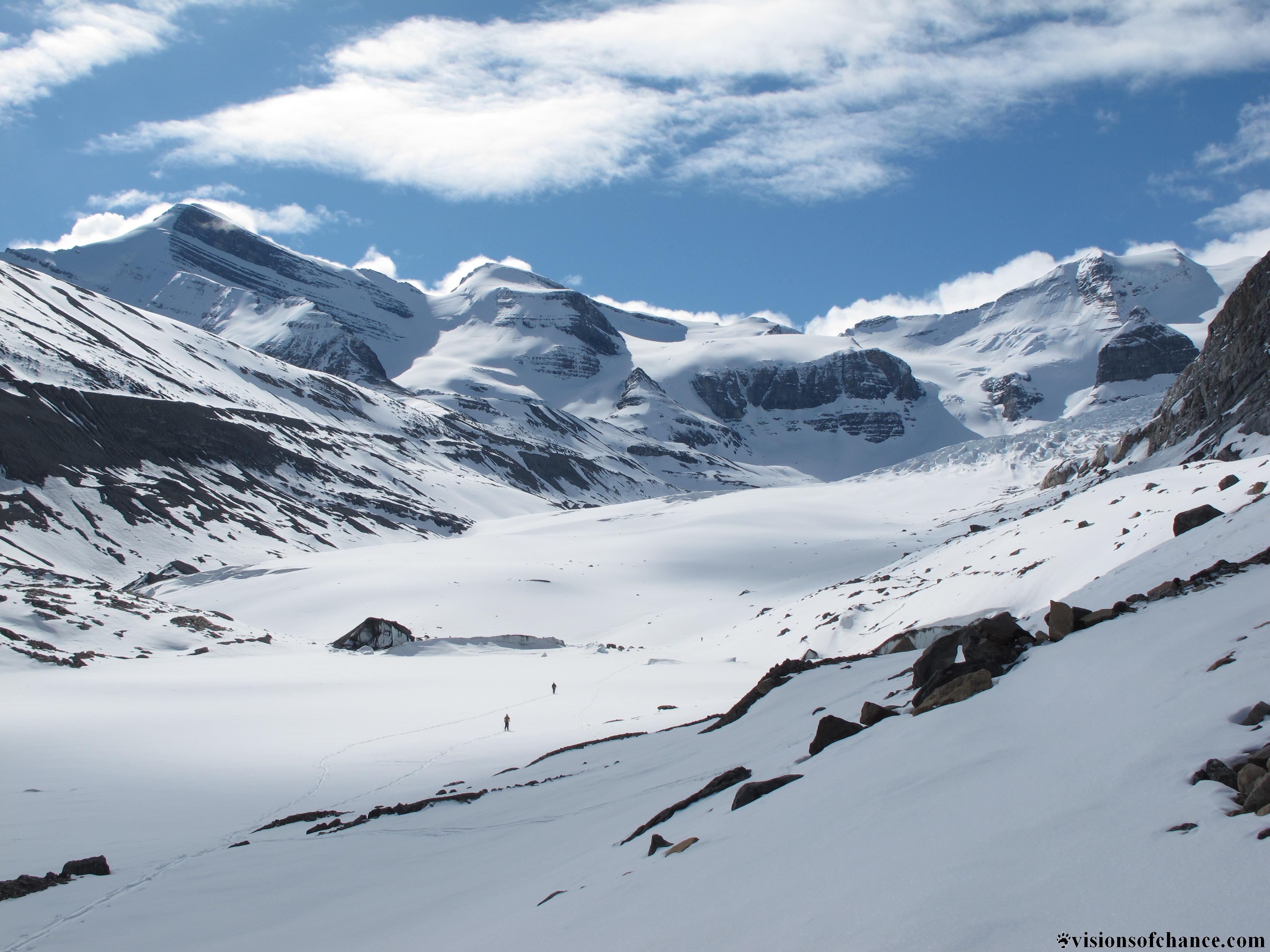 Jeff V is the guy that got me into ski-mountaineering. Many moons and many ski towns ago, my girlfriend at the time kept telling me I HAD to meet her brother, and when I did, it was the start of a friendship that has included many great adventures, from alpine climbing to powder skiing. We grew in the mountains together, and an opportunity to ski with Jeff this spring was welcome. We tossed ideas around, including a sled mission to the Freshfield Icefield N of Golden. In the end, we chose to go further N, back to Jasper, where it really all began. The goal lay across the border in B.C., a second try on Mt Resplendent, the first being back in those formative years with Jeff and Dave S.