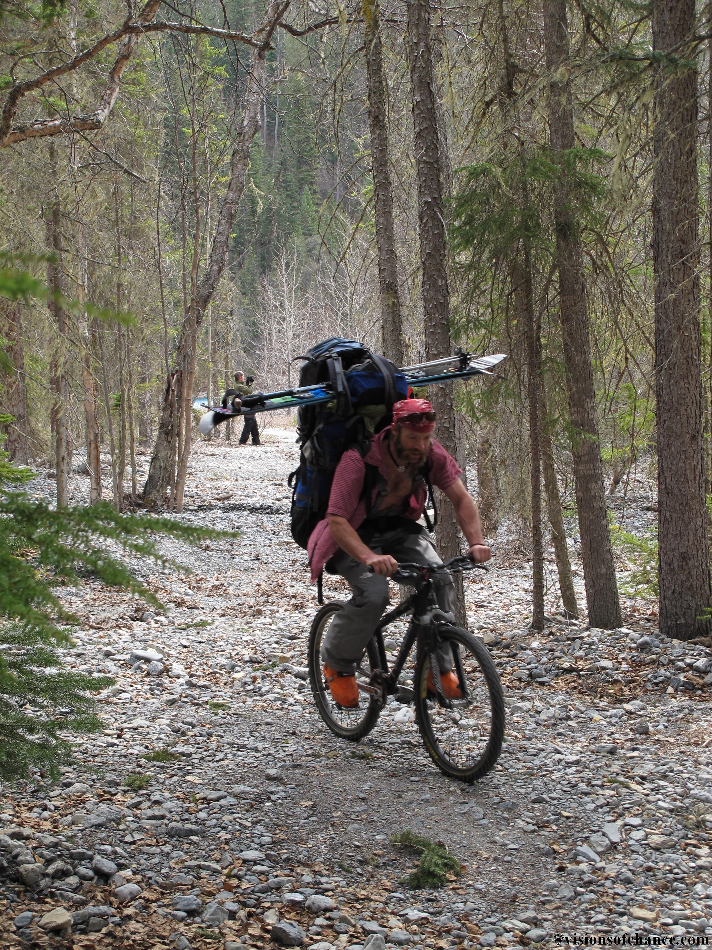 The out was quite fast, Greg and Joey made it in just over three hours, and the rest of us were not far behind, back at the parking lot just before dark. The bikes were awesome on the way out! A very strenuous 3 day mission to a wicked zone, worth every bit of energy invested. It turns out that our friend Jon W from Golden was skiing on the N face of Whitehorn on the same day we were on Resplendent, a very aesthetic line as well. There are many other’s, definitely a fine ski destination. I can’t wait to return!