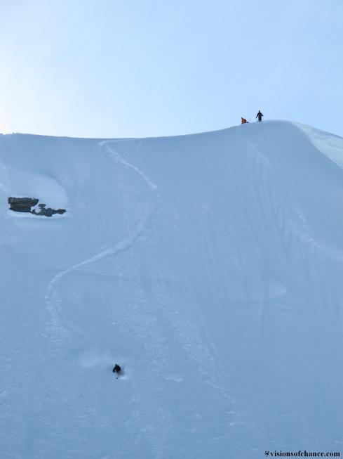 What an exceptional day in the mountains, three classic runs with a great posse, for a total of 3200m. One of the parties we passed that day was visiting from the states, and they commented about how lucky we are to live in such a spot. I couldn’t agree more. Commercial operations around here use a descriptive word scale to rate stability (very poor, poor, fair, good, very good) for below treeline, at treeline, and in the alpine. On this day they were calling it three times good. Damn right!