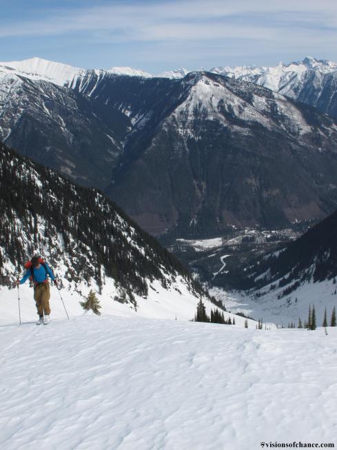 We worked the shady aspects down the same bowl we had ascended and the skiing was really good!