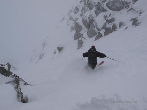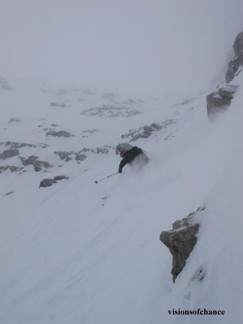 Both snow quality and visibility improved as we dodged tracks and used the “hard right, hard right” tactic to keep us in the deepest, best fall line skiing the Hermit has to offer. Sweet day!